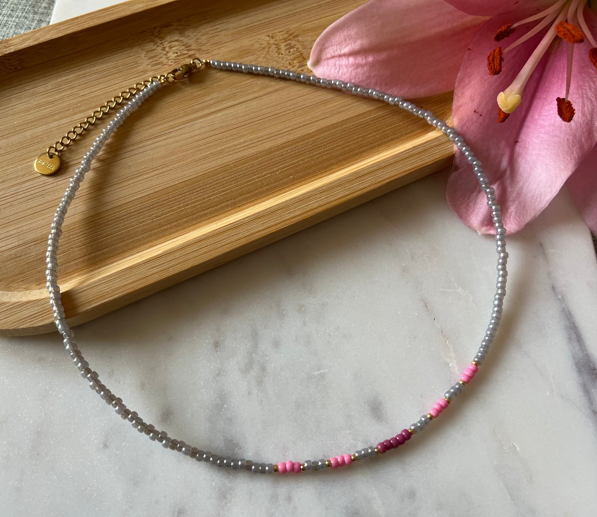 De Galah – een prachtige roze-grijze papegaai met een opvallend karakter en een flinke dosis lawaai – vormde de inspiratie voor dit subtiele kettinkje met een gouden touch.