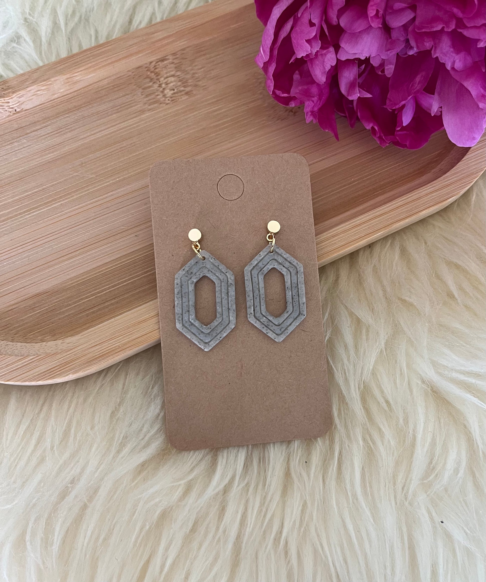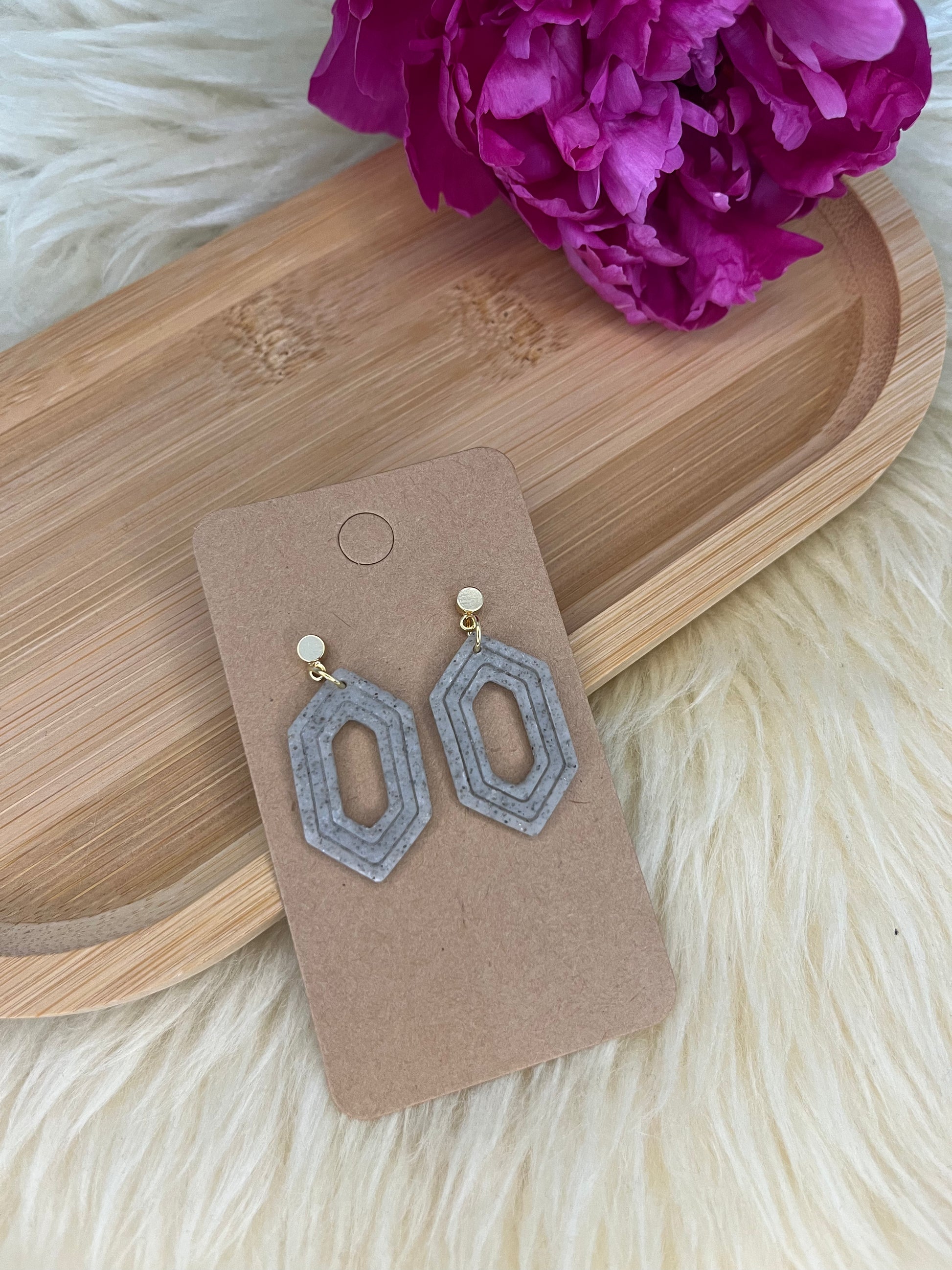Minimalistisch met een stoere twist: deze zeshoekige oorbel in grijs granietlook past bij alles. Tijdloos, subtiel en net even anders.