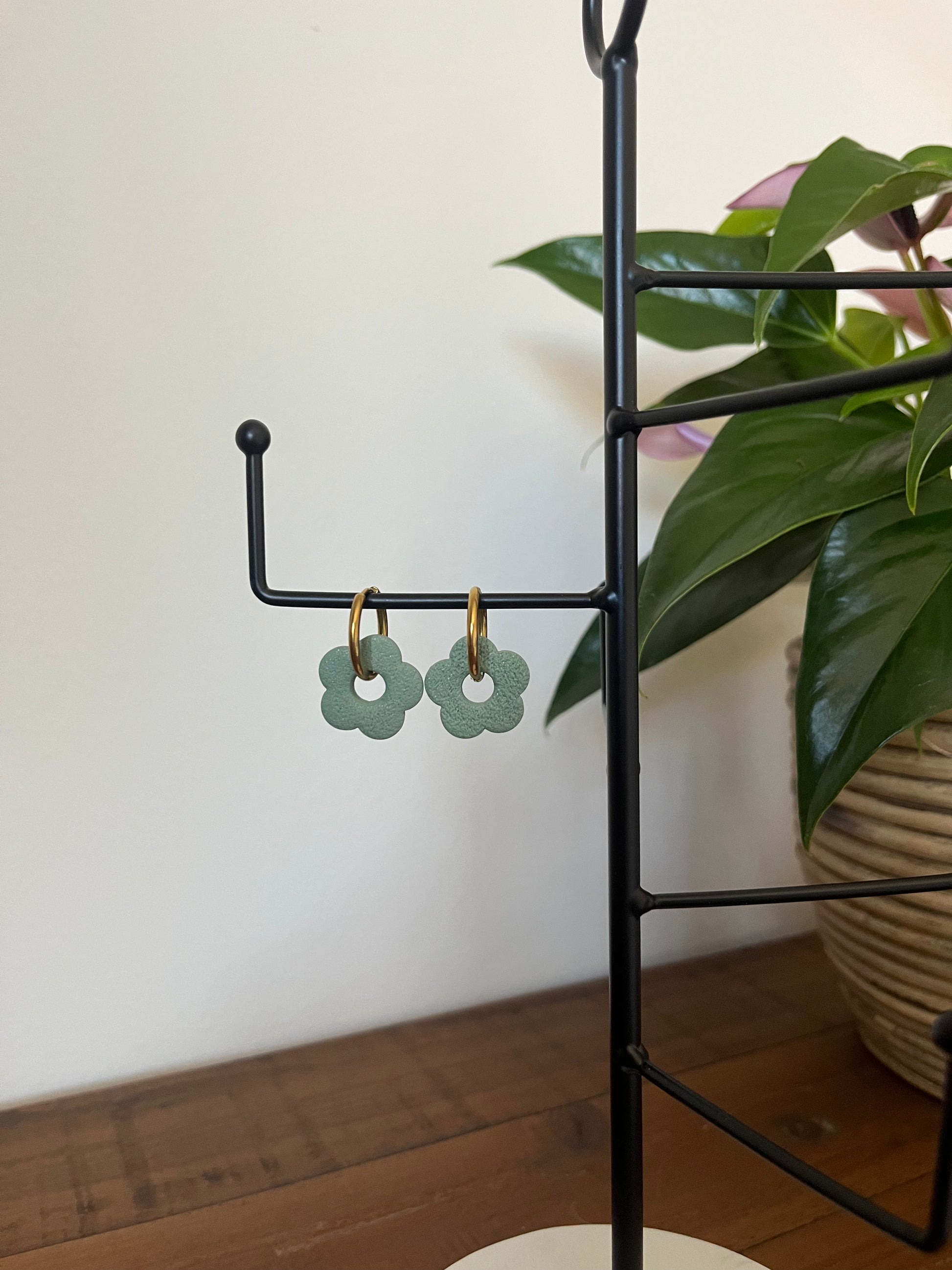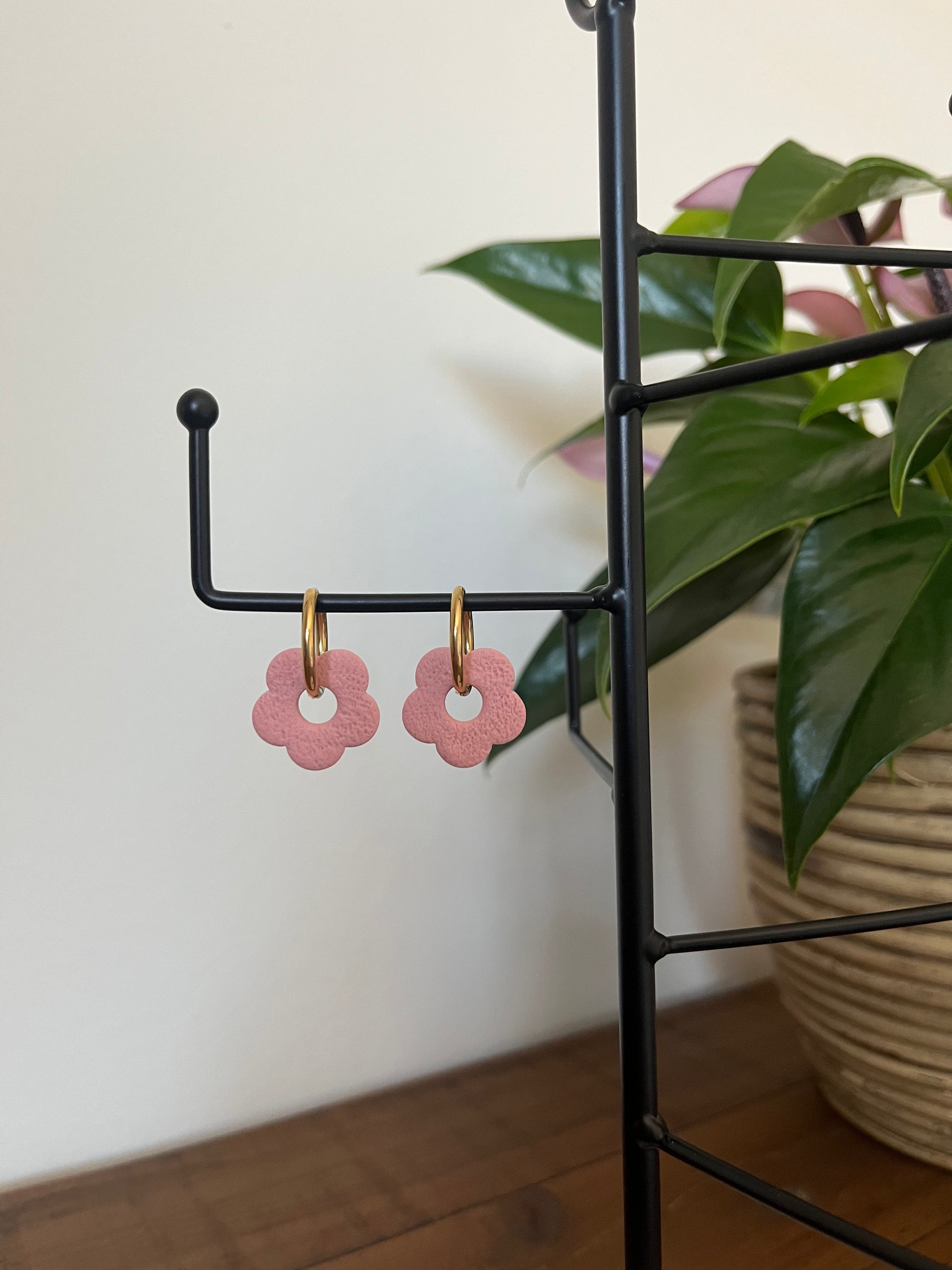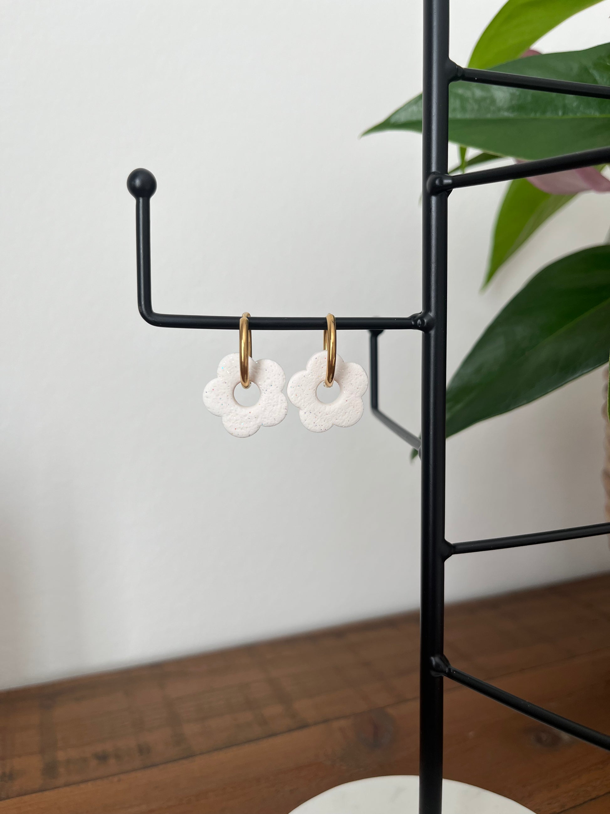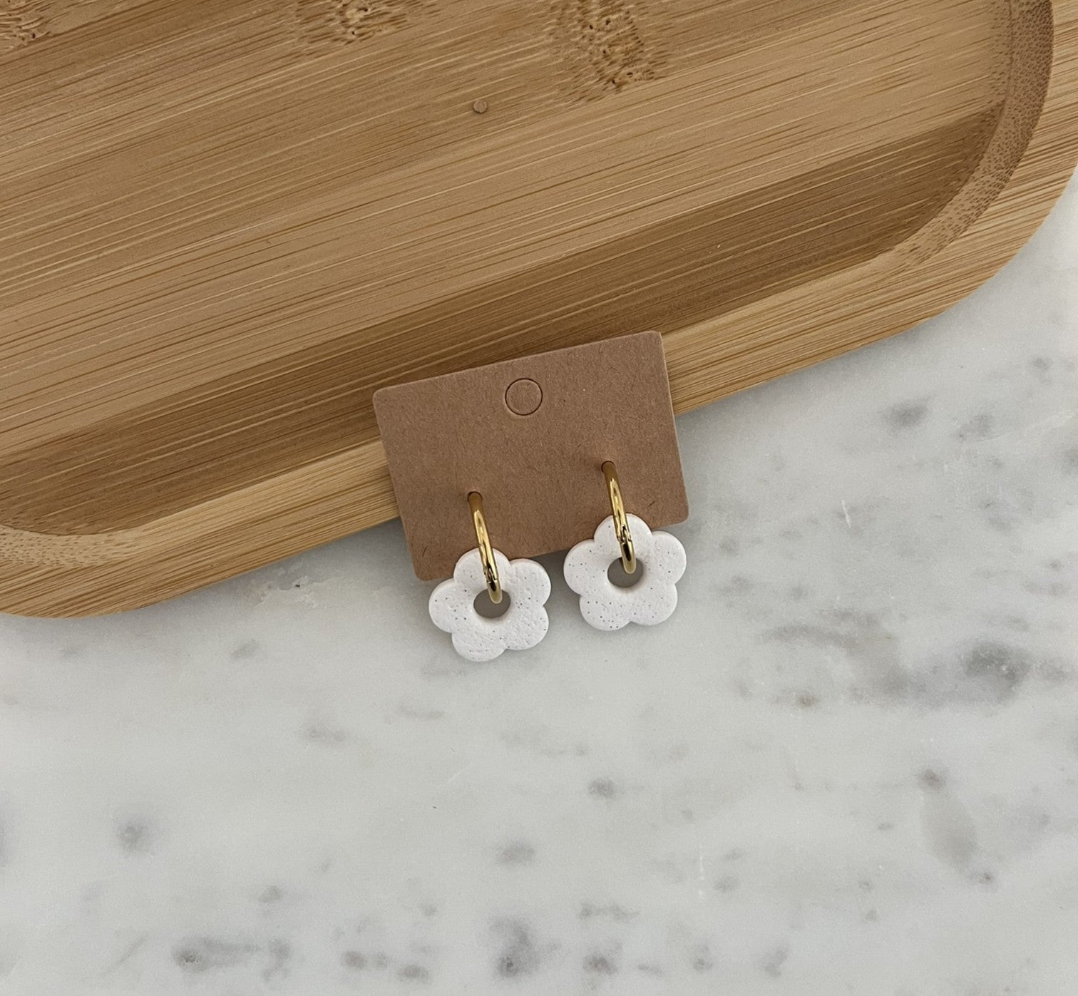 Simpel en elegant, een lief madeliefje aan een gouden huggie hoop.