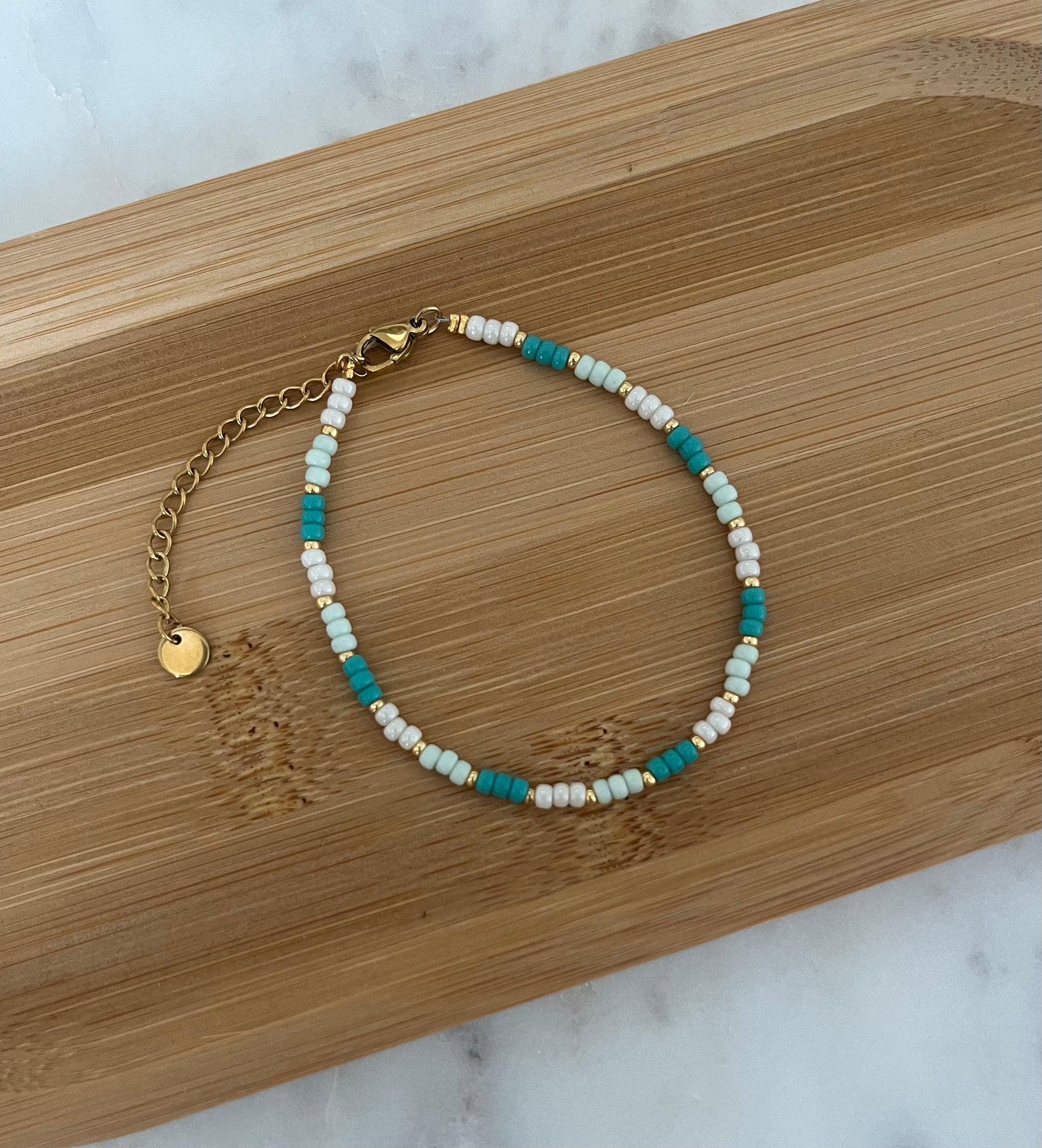 Mint, turquoise en een vleugje goud – als zonlicht op helder water.
