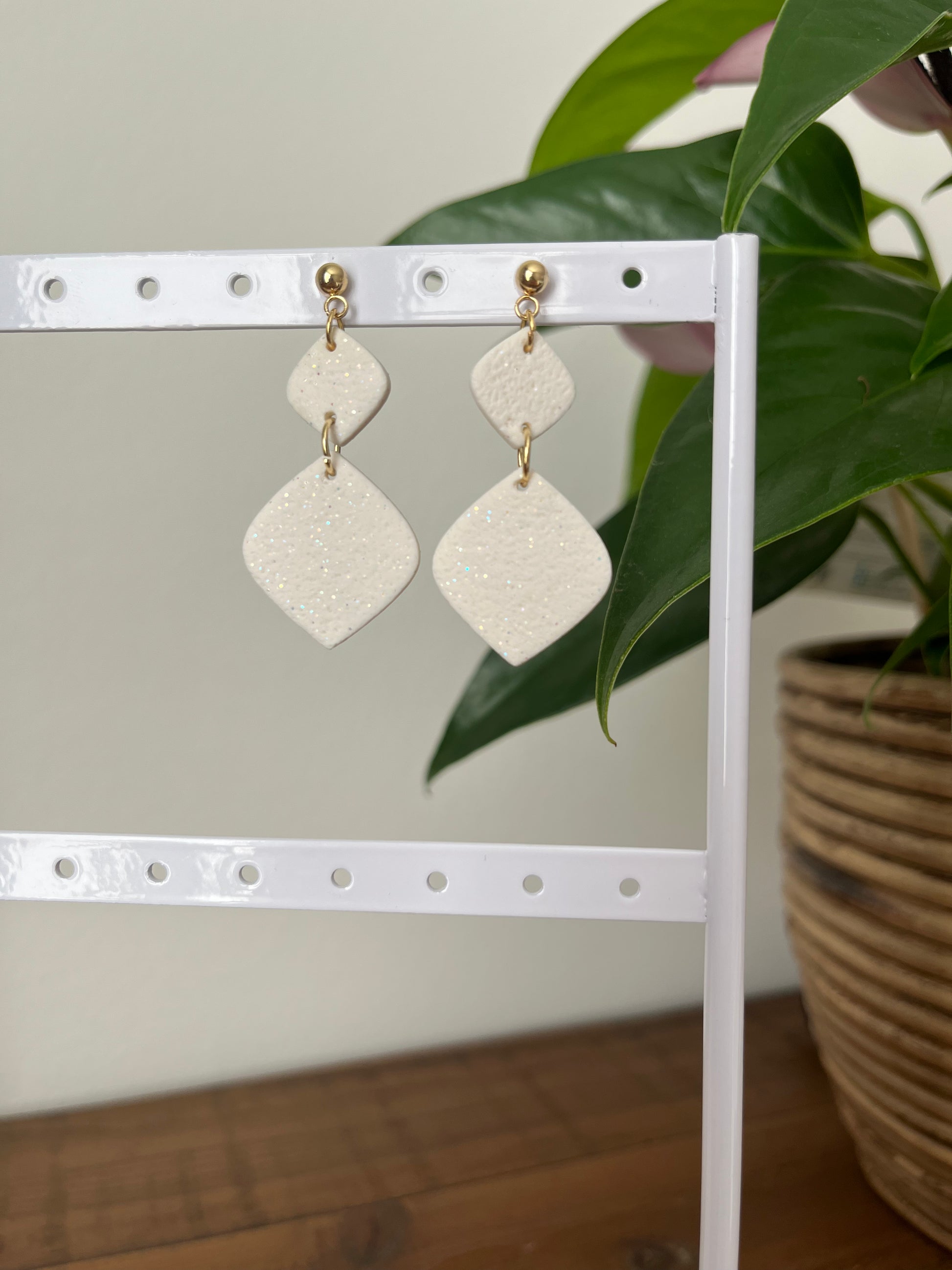 Licht en sprankelend: deze ruitvormige witte oorbellen brengen een vleugje luxe aan je outfit.