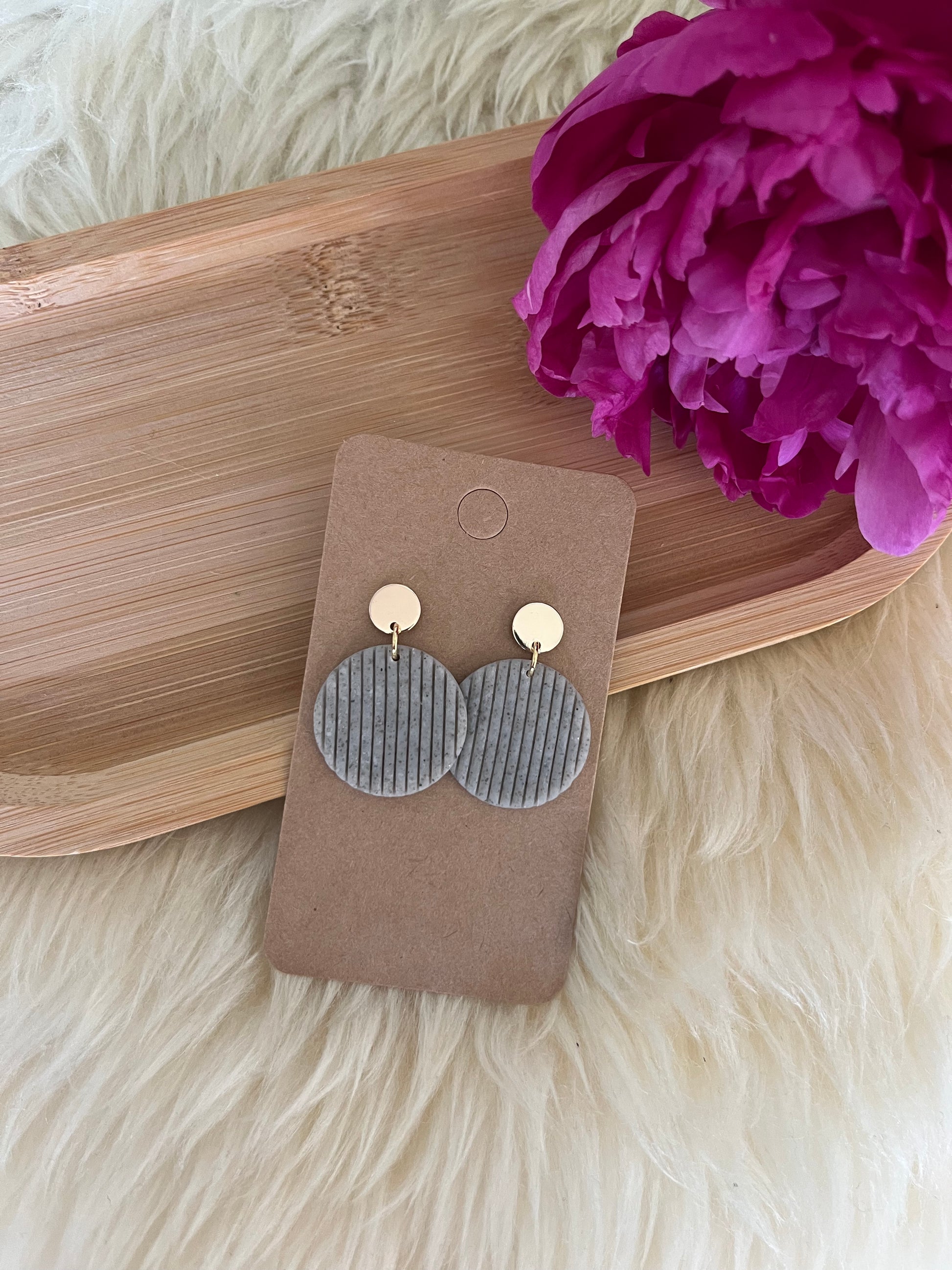 Simpel met een twist, deze oorbel combineert strakke strepen met ronde vormen in een subtiele granietlook.