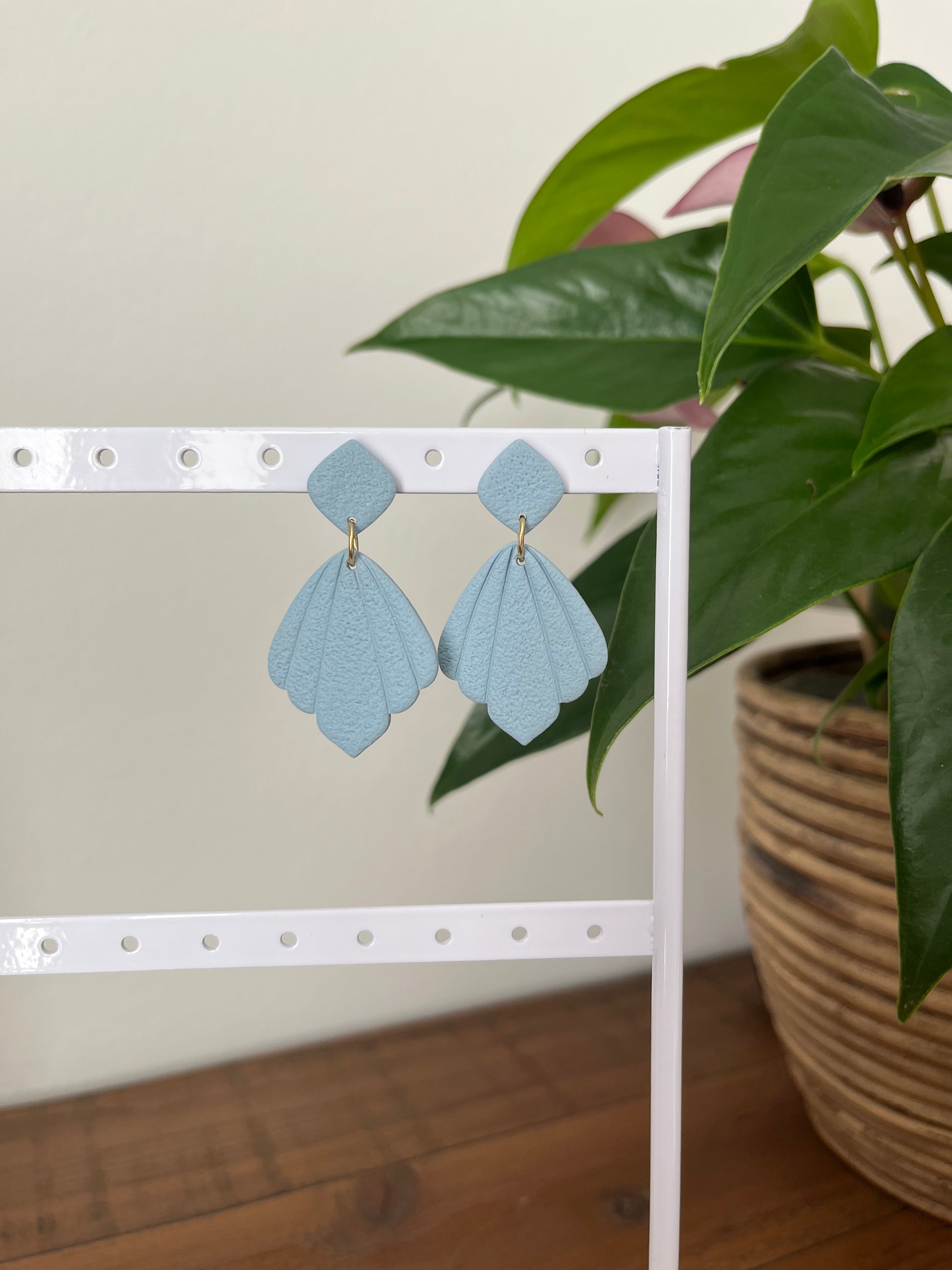 Deze zachtblauwe schelpvormige hanger doet denken aan zonnige dagen en zachte golven.