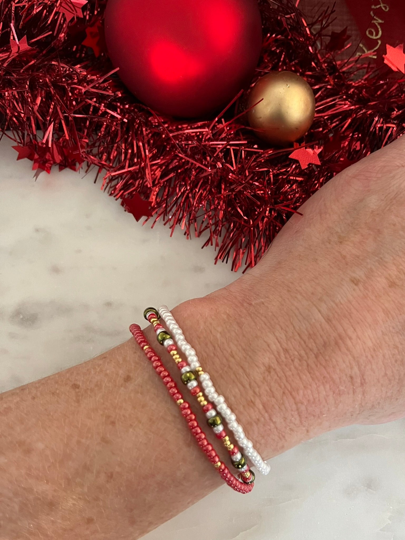 De Twinkle Bracelet Wrap combineert sprankelende kerstkleuren: rood, groen, wit en een vleugje goud. Wikkel hem drie keer om je pols voor een vrolijke, glitterende kerstlook of geef ‘m cadeau aan iemand die van feestelijke bling houdt.